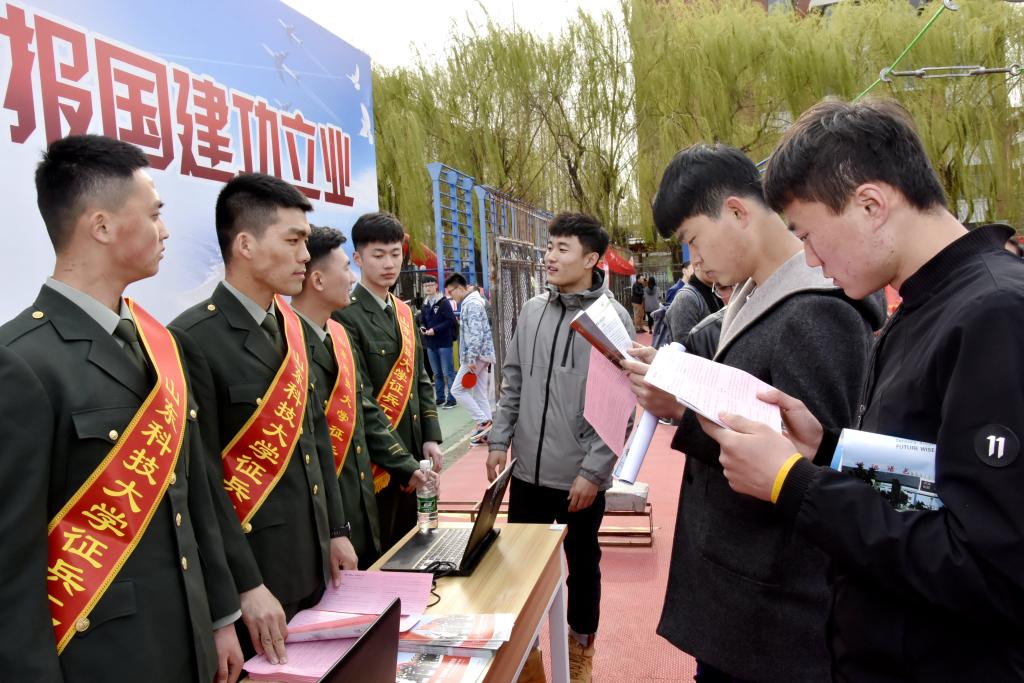 学校毕业生招聘会上,连续5年参展的“毕业了,我们当兵去”的展位总是一大亮点。学生工作部副部长孔环告诉记者:“当前正值2021年应届毕业生找工作高峰,我们将征兵宣传与就业服务同步部署实施,动员更多学生投笔从戎。”