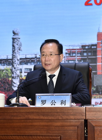 罗公利指出,回望过去,各级干部和广大师生攻坚克难、拼搏奉献,以抓铁有痕、踏石留印的务实作风,解决了许多长期制约发展的矛盾问题,战胜了许多前所未有的风险挑战,办成了许多事关全局长远的大事要事,学校各项事业发展取得了显著成绩,学校整体办学实力和社会声誉显著提升,为学校高质量发展奠定了基础。立足当下,学校还面临着诸多严峻挑战和困难,要保持清醒,客观认识学校发展面临的严峻挑战和突出问题,持续发扬历史主动精神,以正确的战略策略应变局、育新机、开新局,以高度的事业心和强烈的责任感,迎难而上、团结奋斗,不断开辟学校事业发展的新局面。