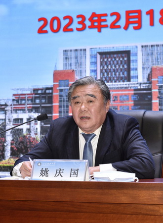 姚庆国在主持会议时指出,2023年是学校发展的关键之年,各部门、各单位要认真学习领会和落实好2023年度工作会议精神,把思想和行动统一到学校的总体部署上来。要保持战略定力,笃定信心、稳中求进,全面审视学校发展面临的困难挑战和战略机遇,始终保持高质量发展的战略定力,乘势而上,扎扎实实做好每一项工作;要锚定发展目标,狠抓落实、接续奋斗,以永不懈怠的精神状态和一往无前的奋斗姿态,一张蓝图绘到底,一以贯之抓落实,全面完成各项工作任务;要凝聚发展共识,同心同德、勇毅前行,始终在思想上、行动上与学校党委保持高度一致,同频共振、同向而行,心往一处想、劲往一处使,埋头苦干、奋勇前行,以担当致敬使命,以奋斗创造奇迹,努力开创学校高质量发展的崭新篇章。