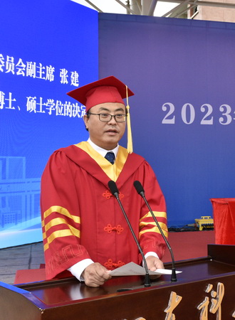 张建宣读《关于授予2023届研究生博士、硕士学位的决定》