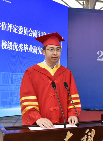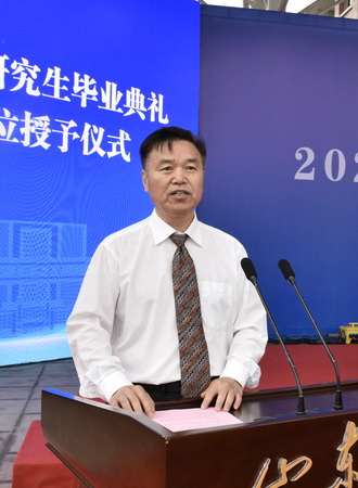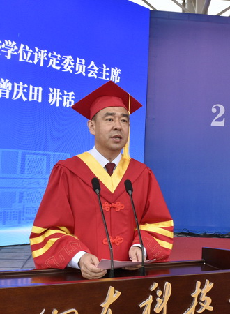 曾庆田代表学校向圆满完成学业的硕博毕业生表示热烈的祝贺和深情的祝福,向为此付出辛劳的老师、家长致以崇高的敬意和诚挚的感谢。他指出,在过去的几年里,同学们用实际行动践行锐意进取、勇于创新、敢于实践、勤奋学习,与祖国共奋进、与学校同成长,取得了一项又一项好成绩。回想同学们这几年的努力和付出,大家都为优秀勤奋的你们感到无比自豪、由衷骄傲。同学们即将重新起航,踏上新征程,希望同学们秉承太阳集团tyc539“惟真求新”的校训,守正出新,追求卓越,奏响属于自己的青春赞歌。