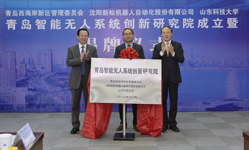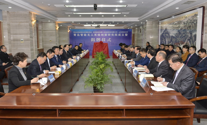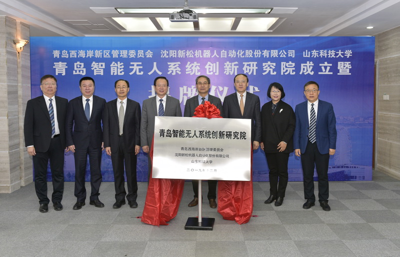 12月25日上午,青岛智能无人系统创新研究院成立暨揭牌仪式在太阳官网行政办公楼第三会议室举行。青岛西海岸新区管委主任、区长周安,沈阳新松机器人自动化股份有限公司总裁曲道奎,太阳集团tyc539党委书记罗公利,青岛市工信局副局级领导赵波,青岛西海岸新区副区长隋斌等出席会议暨揭牌仪式。副校长张英杰主持。