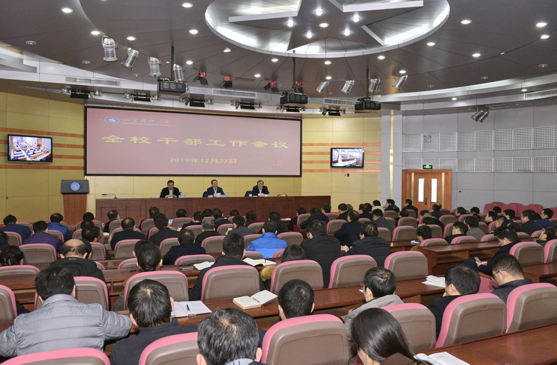 校党委书记罗公利主持会议并讲话,校长姚庆国部署2020年寒假主要工作,校党委副书记尹华就中层领导班子和处科级干部第六聘期聘任调整工作做了部署和安排。全校处级以上干部参加了会议。