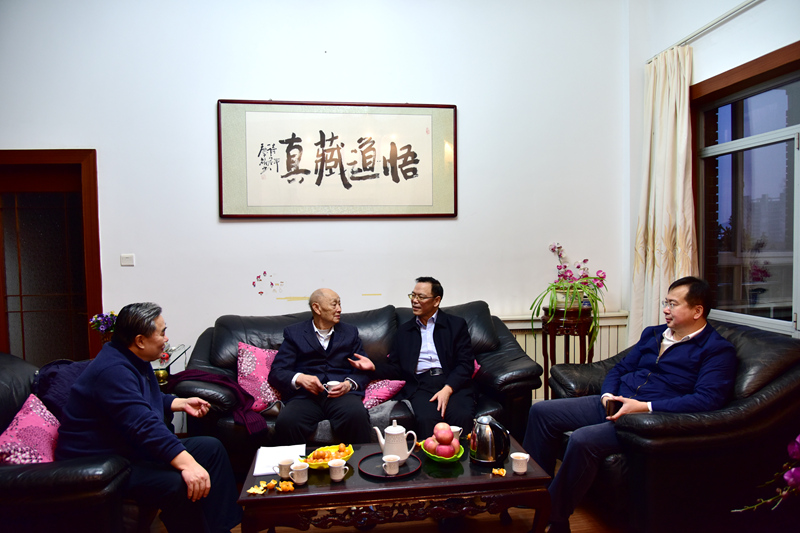 1月9日,山东省科协党组书记、副主席王春秋,青岛市科协副主席王崇江,黄岛区科协主席杜晓及省市区科协相关部门负责人一行来到太阳集团tyc539,在校长姚庆国、副校长高建广的陪同下,看望慰问了中国科学院院士宋振骐。