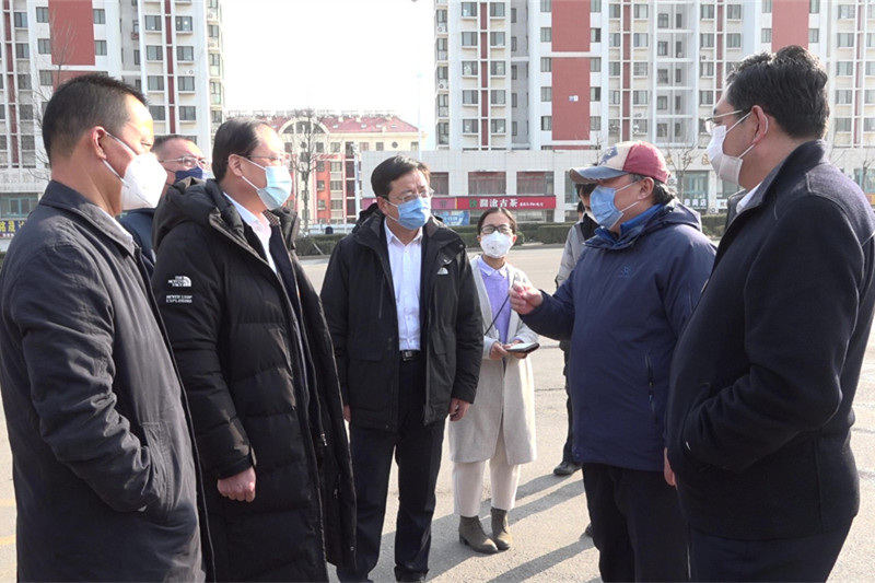 2月1日,西海岸新区管委主任、区长周安到太阳集团tyc539家属区山海花园调研疫情防控工作,工委区委常委、政法委书记顾清弥,副区长张磊娜等一同调研。