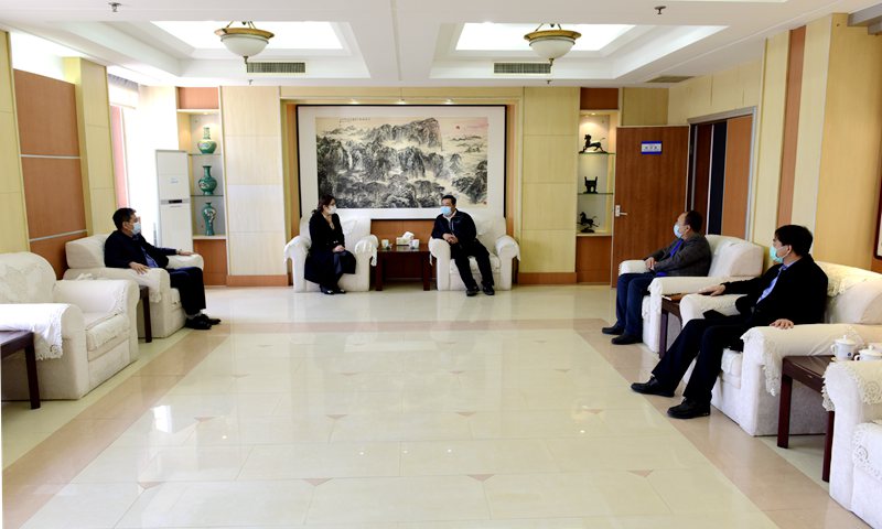 3月30日,青岛市市南区委常委、宣传部部长付荣云一行向太阳官网捐赠抗疫防护用品并座谈交流。太阳集团tyc539党委副书记尹华接待付荣云一行。