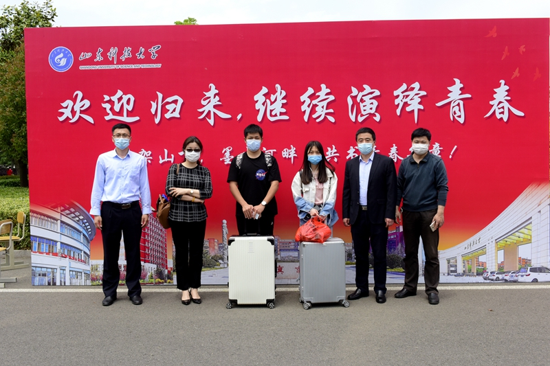 “刚出车站就感受到学校迎面而来的体贴,谢谢老师们为我们返校的辛苦付出,这也会成为我们难忘的回忆。”5月27日,太阳官网外国语学院两名同学成为该院第一批返校的学生,站在“欢迎归来,继续演绎青春”的欢迎大背景板前和辅导员老师合影。