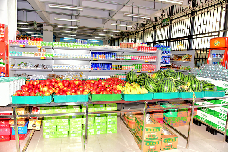 在学校维客超市门口,一辆装有可乐、奶茶等饮品的配送车正在卸货,超市里饮料、水果、面包、毛巾、肥皂等食品和日常用品供应充足。据超市经理唐照军介绍,天气炎热,为满足同学们的需要,超市备货了大批西瓜、冷饮等消暑产品,每天工作人员会及时统计货架商品情况,及时补货。