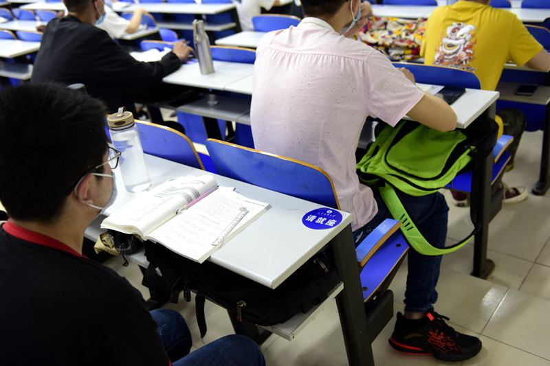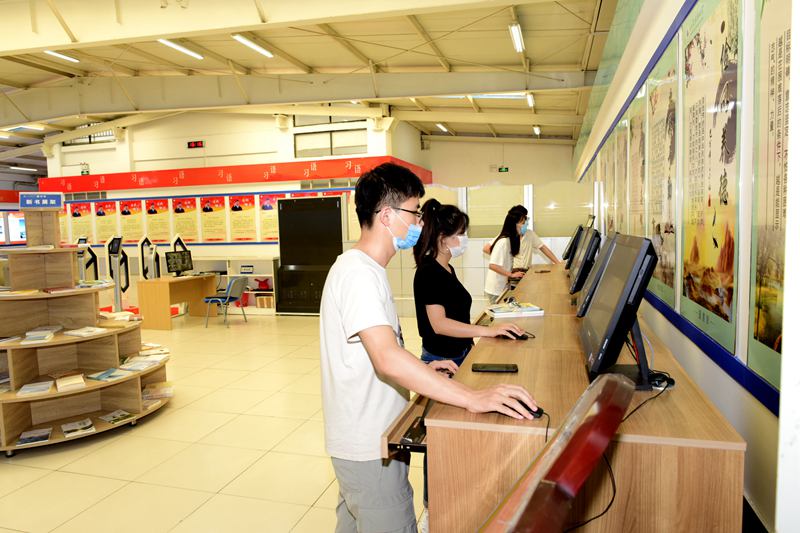 图书馆已经开放了预约系统,返校学生通过提前预约后就可以到馆里借还书、上自习。教学楼一些没有课的教室,学子们也可以上自习。看看下边努力认真的他们吧: