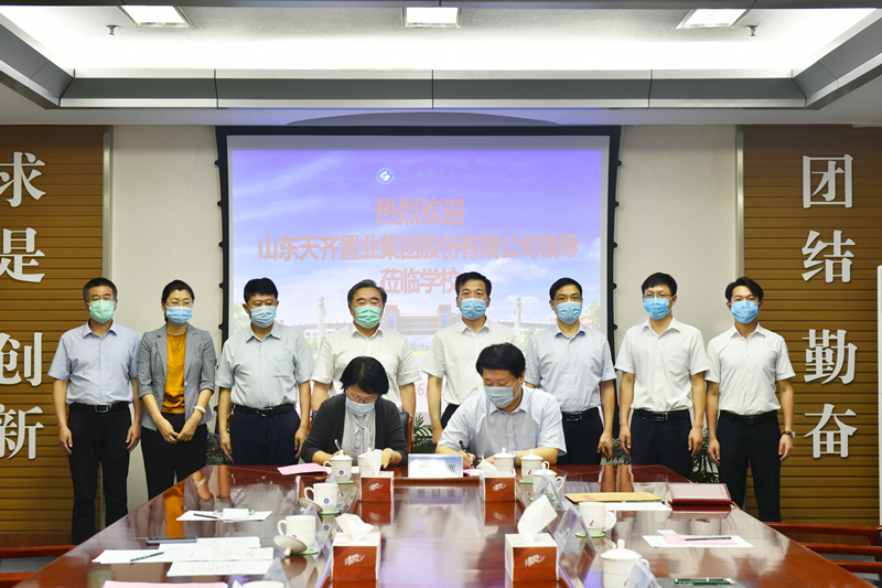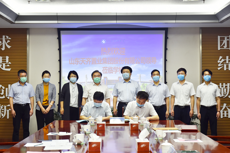 6月23日,太阳集团tyc539与山东天齐置业集团股份有限公司举行战略合作协议签约暨教育发展基金捐赠仪式。校长姚庆国、副校长李玉霞,山东天齐置业集团董事长田茂军、总经理吕茂森出席签约仪式。