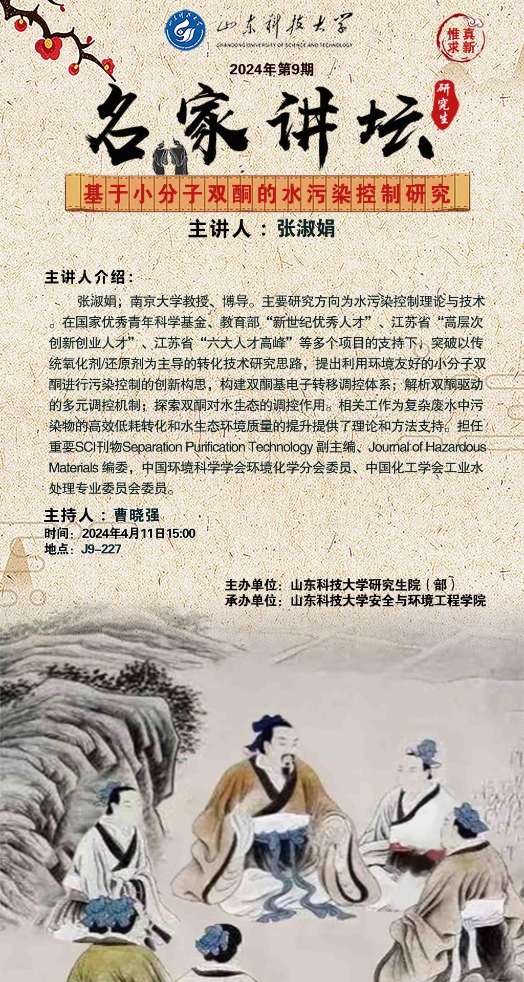 “名家讲坛”2024年第9期:基于小分子双酮的水污染控制研究(总903期)