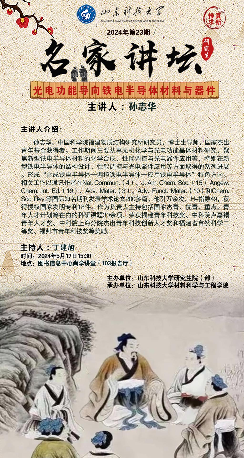 “名家讲坛”2024年第23期:光电功能导向铁电半导体材料与器件(总917期)